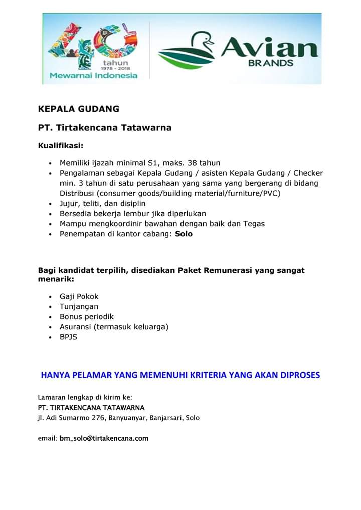 Pengecekan barang helper packing quality control admin gudang cara kerja:. Beragam loker temanggung untuk lulusan sma / smk, d3, dan s1 tersedia di lokersemar.id. Staff gudang distributor cctv pt. Lowongan kerja glico wings cilacap. Saat ini penerimaan karyawan kembali dibuka.